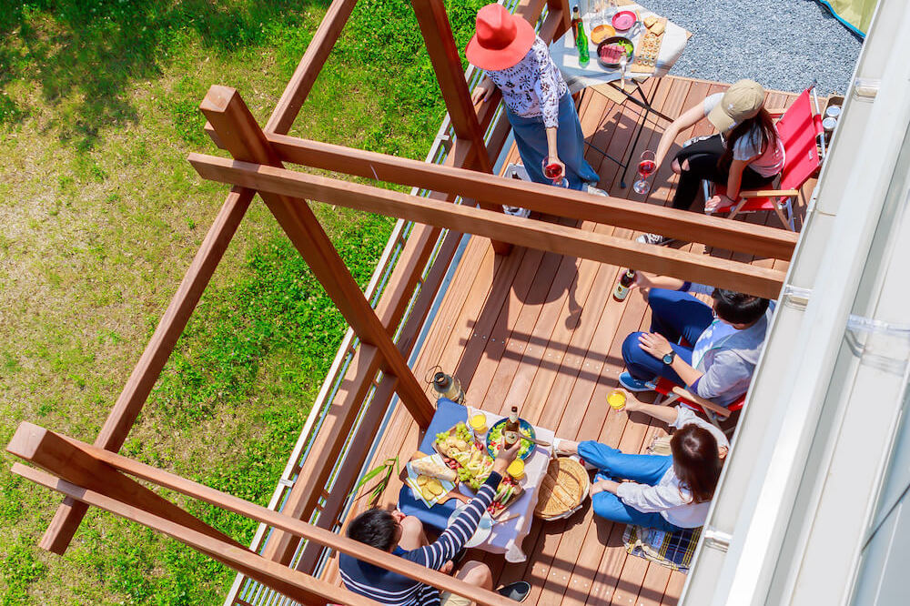 大型ウッドデッキで四季を愉しむ暮らし。お子様がのびのび暮らせる緑溢れる街。